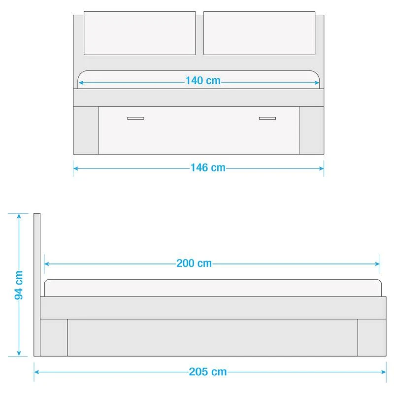 - Surface de couchage : 140 x 200cm