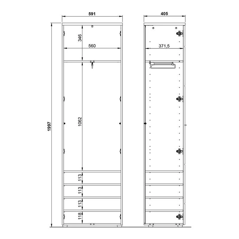 - Armoire : 60 x 198 x 41 cm