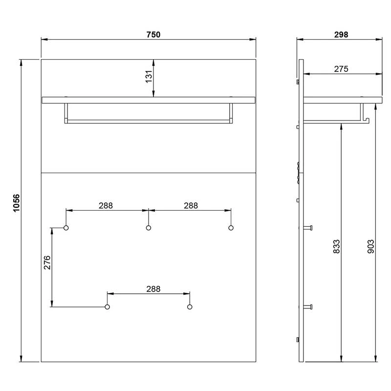 - Étagère à chapeaux : 75 x 27,5 cm (L x P)