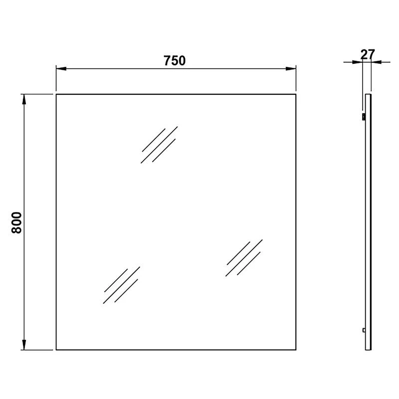 - Miroir : 74 x 80 x 3 cm