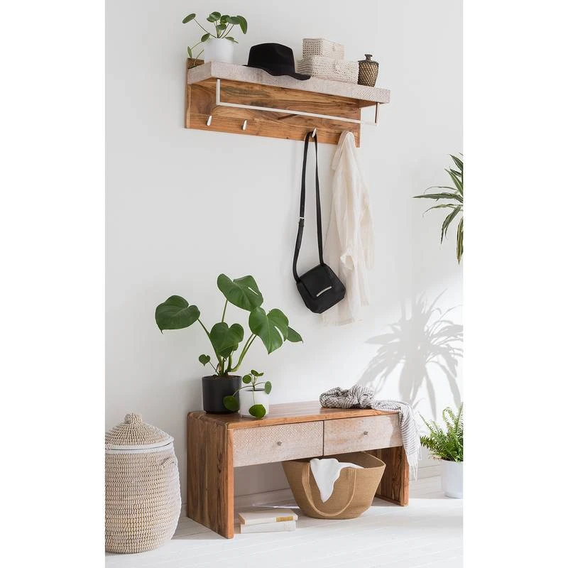 - Contenu de la livraison : 1 porte-manteaux mural et 1 banc d’entrée, sans accessoires