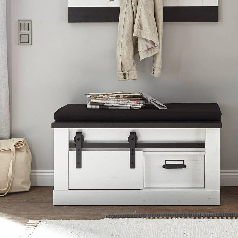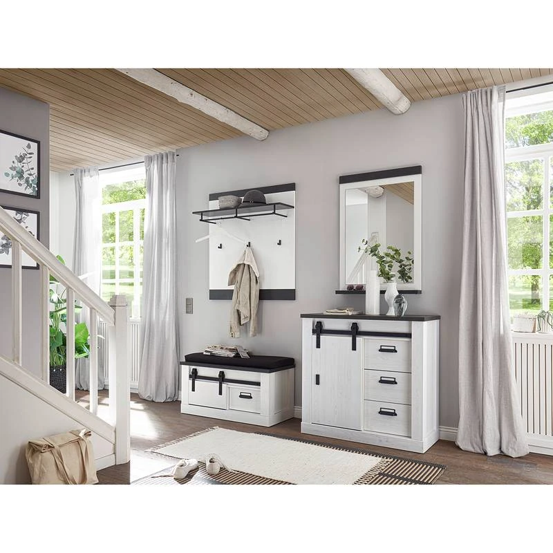 - Contenu de la livraison : Ensemble d’entrée comprenant 1 porte-manteau mural, 1 miroir, 1 buffet et 1 banc avec coussin, sans accessoires