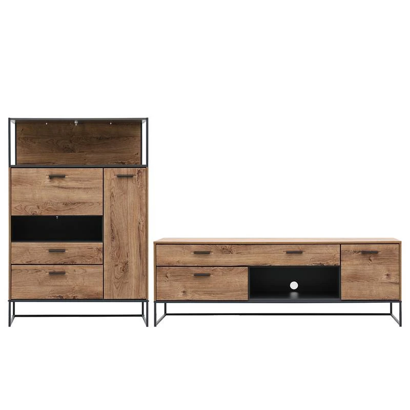 - Contenu de la livraison : Ensemble comprenant 1 buffet haut et 1 meuble TV, sans éclairage ni accessoires