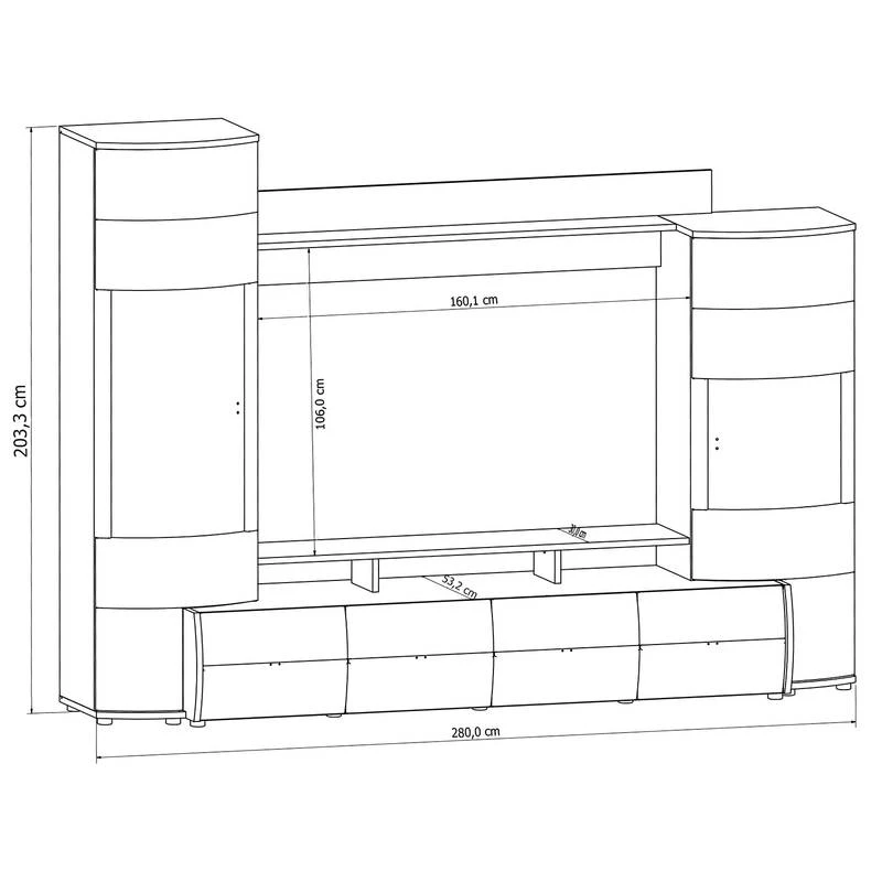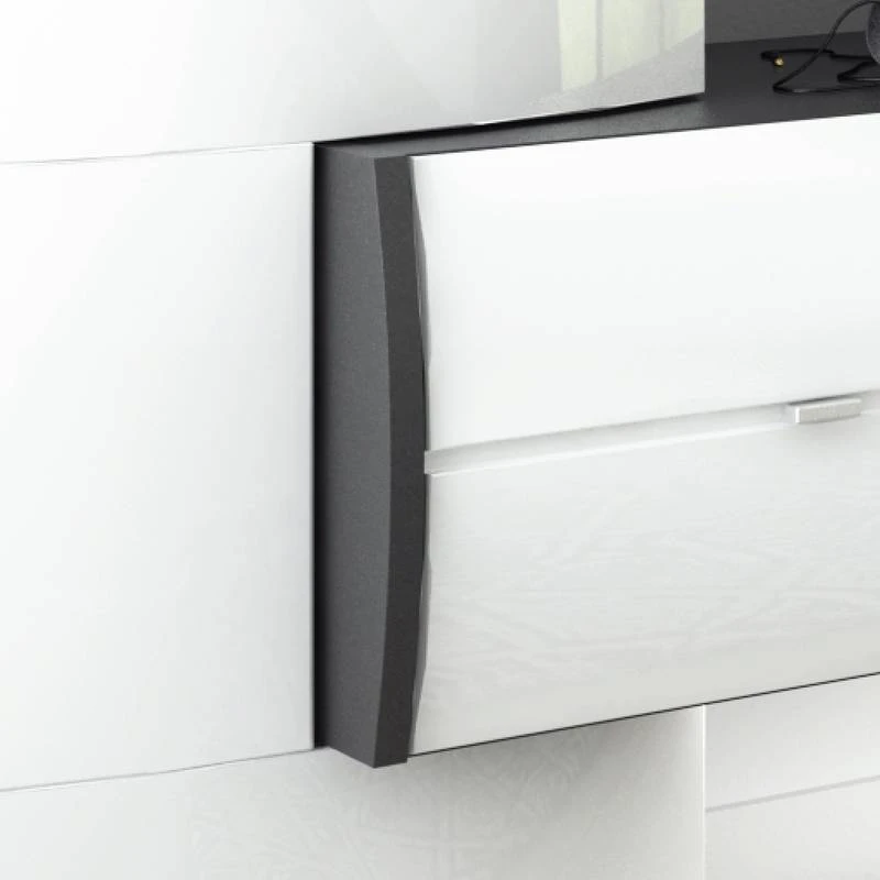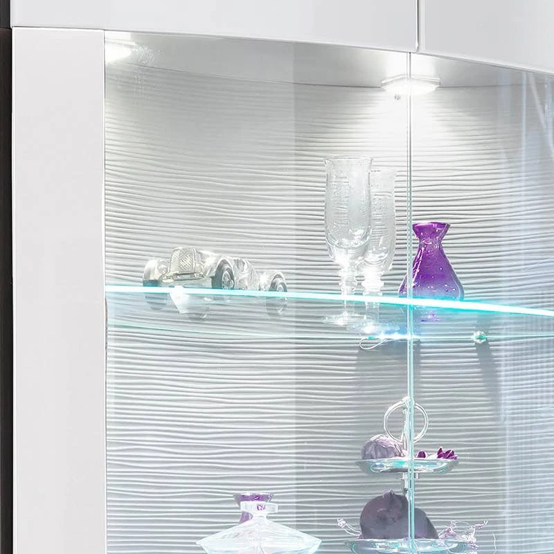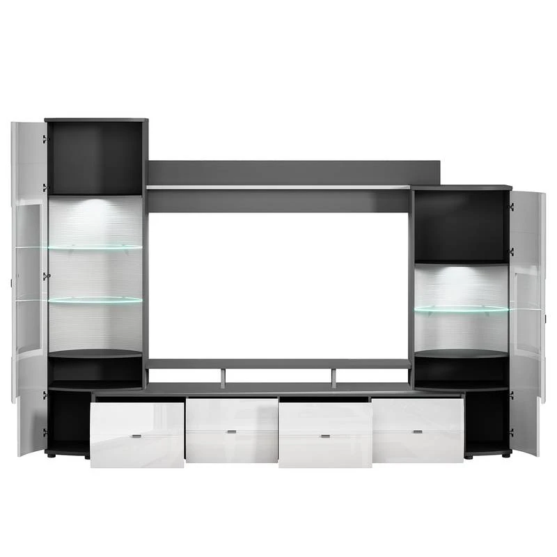 - Contenu de la livraison : Ensemble comprenant 1 meuble TV, 2 vitrines et 1 étagère murale, sans lumière