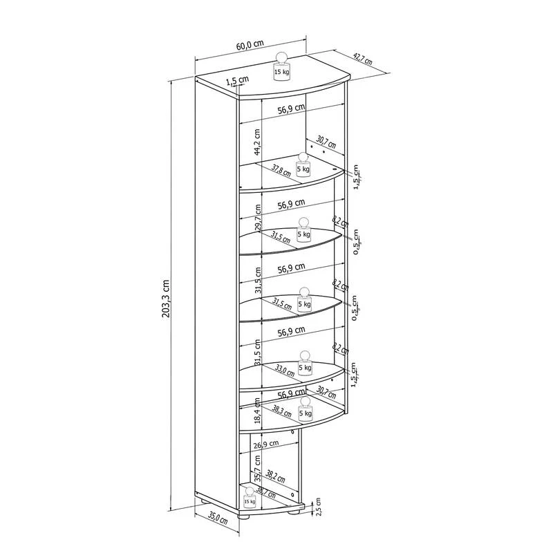 - Charge maximale des étagères : 5 kg