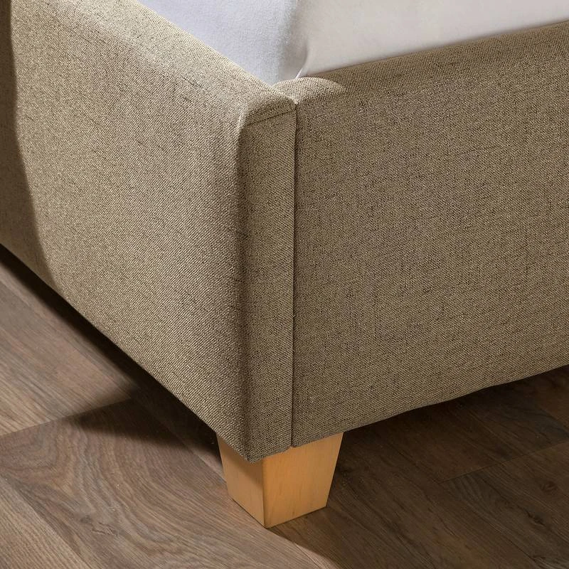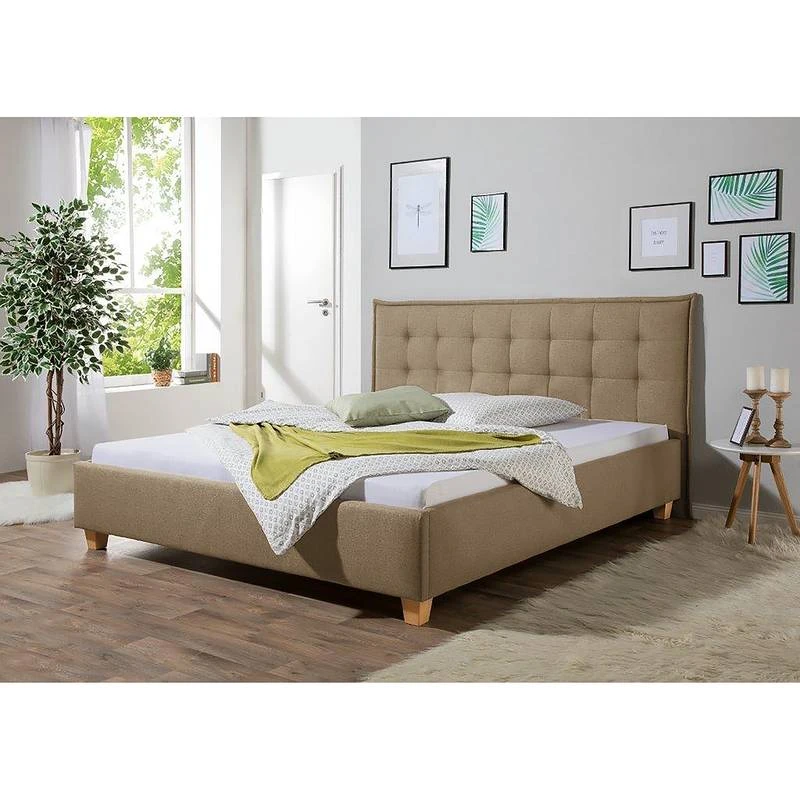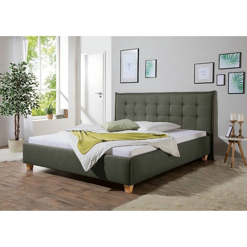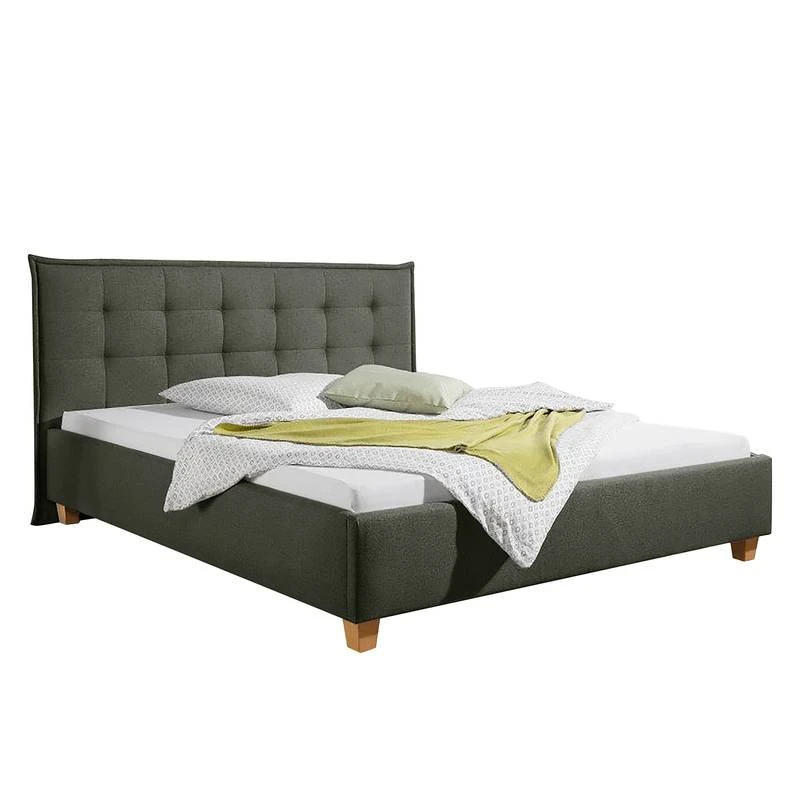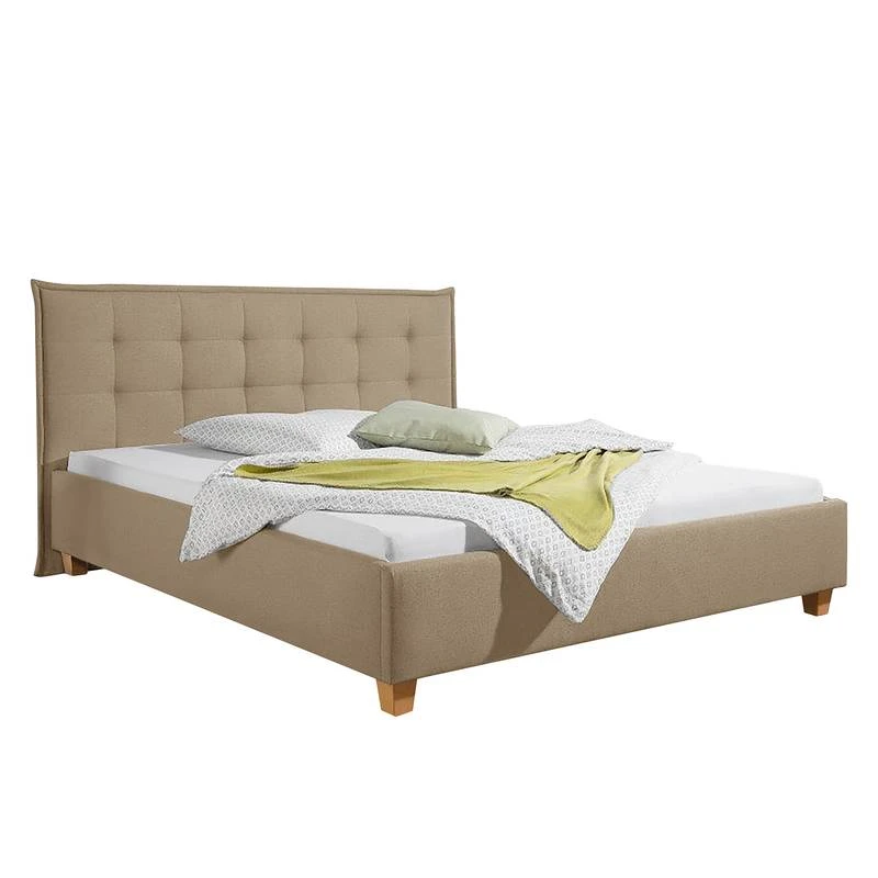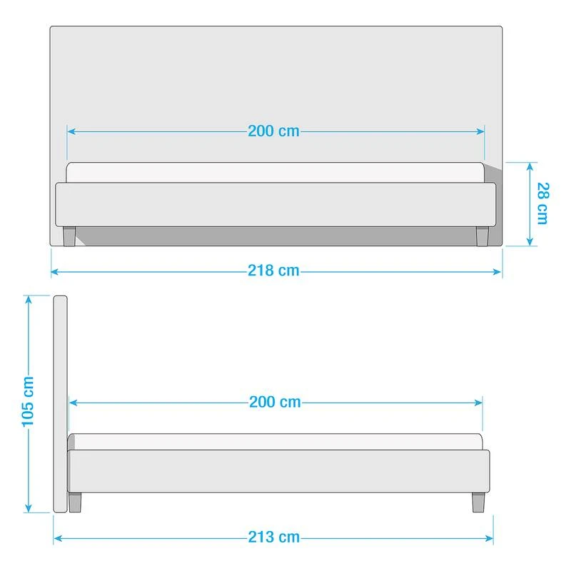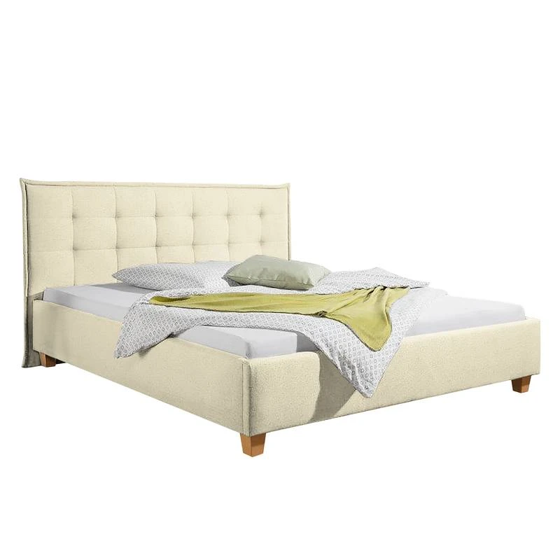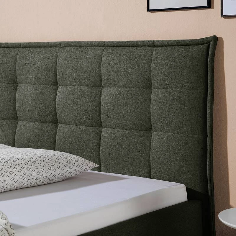 - Autres caractéristiques : Structure avec tête de lit (rembourrage avec surpiqûres et passepoil d’env. 6 cm d’épaisseur). 4 niveaux de réglage de la hauteur de couchage grâce à des équerres en métal.
