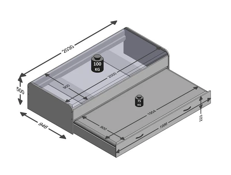 - Dimensions intérieures du lit-tiroir : 195,4 cm x 90 cm