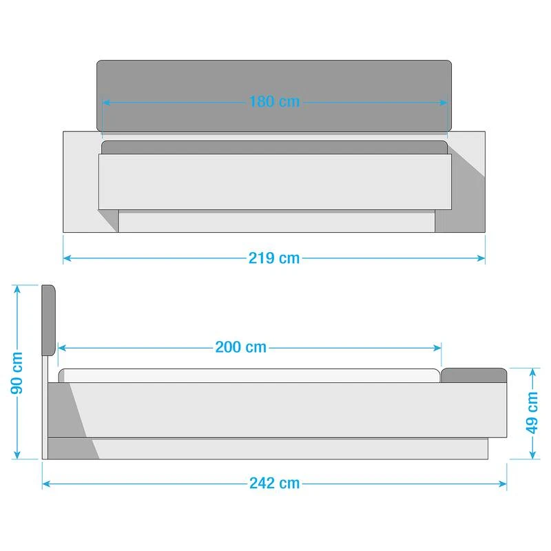 - Hauteur du bord de lit : 49 cm