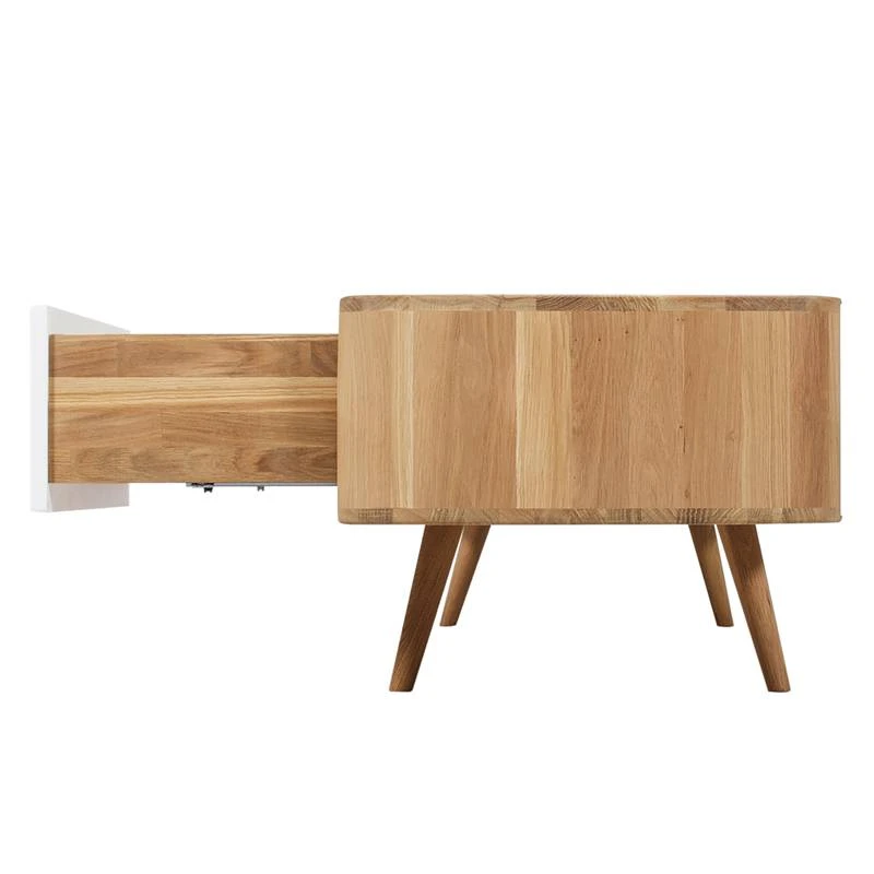 - Corps et pieds : chêne sauvage massif, huilé