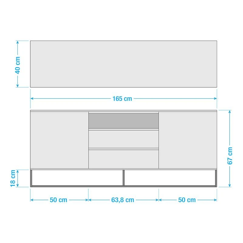 - Largeur des tiroirs et des compartiments : 63,8 cm