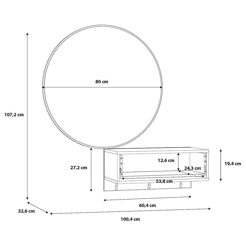 - Miroir : 78 x 3 cm