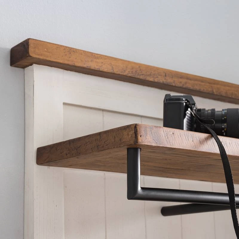 - Panneau et étagère : Pin massif verni